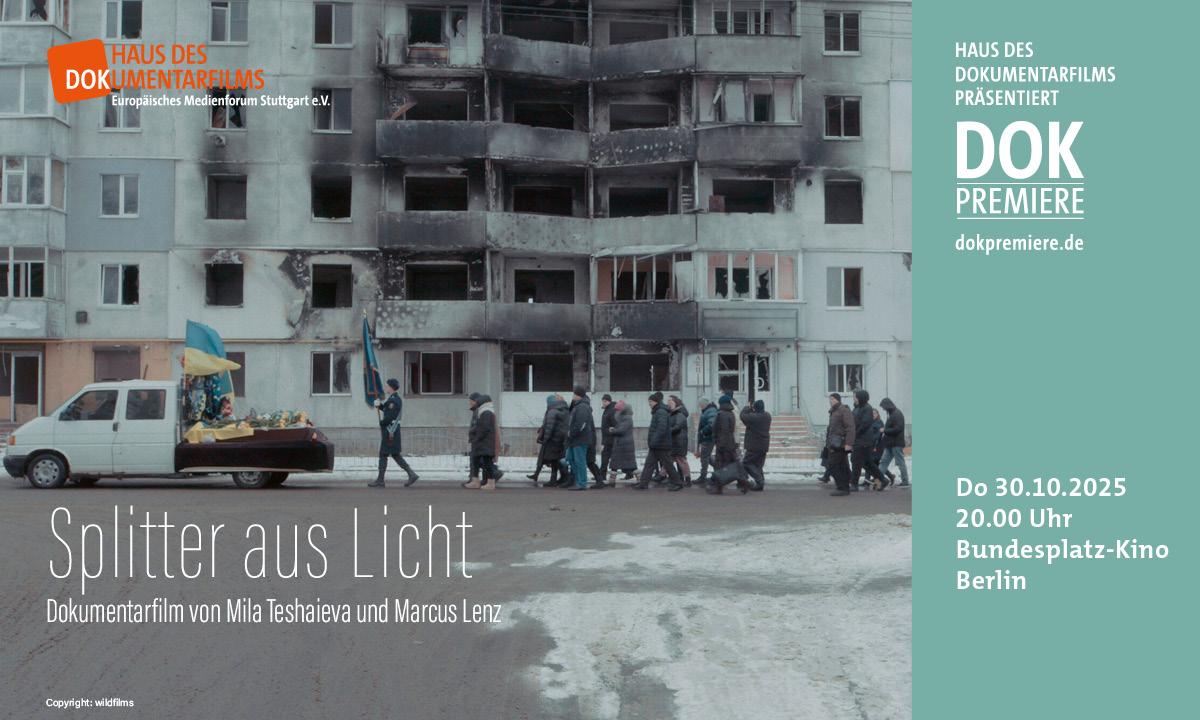 Wie geht das Leben weiter, nachdem Besatzer abgezogen sind? Drei Jahre lang begleitenvon Marcus Lenz und Mila Tashaieva für SPLITTER AUS LICHT – Уламки Світла fünf Überlebende in Butscha: eine zwölfjährige Schülerin, einen jungen Rechtsanwalt, einen Yogalehrer und ein frisch verheiratetes Liebespaar. Die Wirren des Desasters und ein weiter im Land wütender Krieg zertrümmern ihre Pläne und Träume. Sie wünschen sich nichts sehnlicher, als ihr Vorkriegsleben wieder aufzubauen. Die Last des Traumas in sich tragend, scheinen sie schier unlösbaren Aufgaben gegenüber zu stehen. Dennoch zeigen sie Liebe, Hilfsbereitschaft und Solidarität.